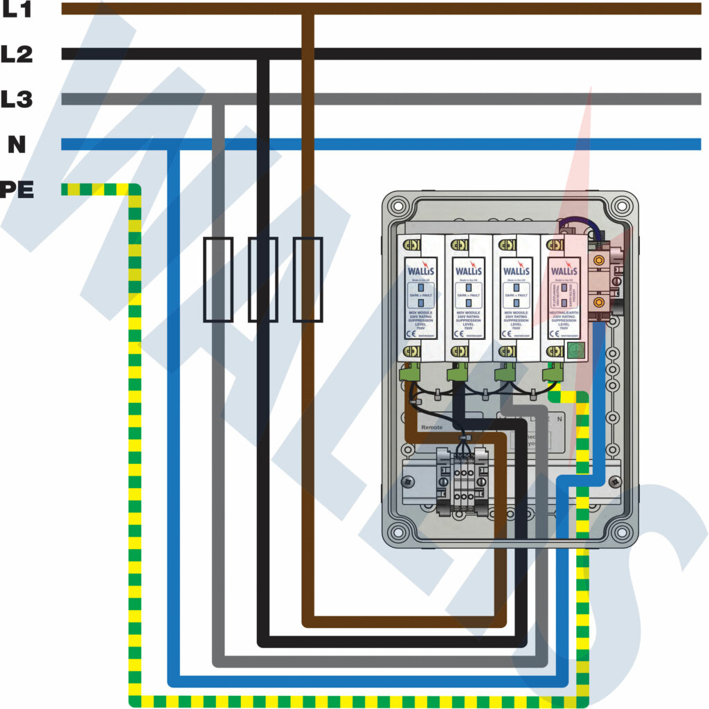 This three phase Type 2 tested (BS EN 61643) surge protector is designed for use primarily on mains power distribution systems to protect connected equipment from transient overvoltages. For use at the boundaries of LPZ 0b to LPZ 3 as part of a coordinated SPD system (BS EN 62305).