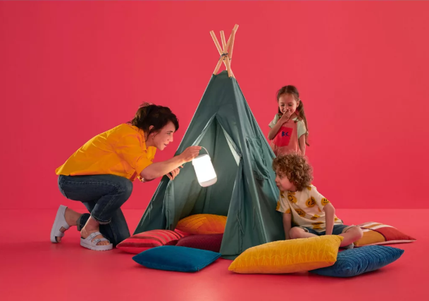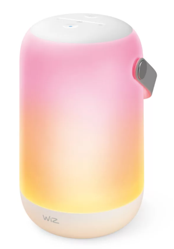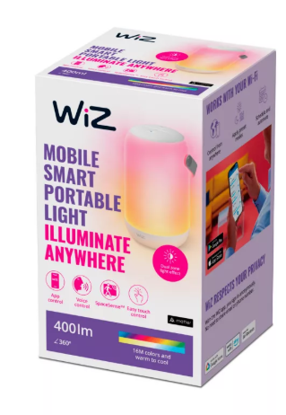 WiZ Mobile Portable Light is a smart full-color portable lamp designed to bring flexible lighting wherever you need it. With dual-zone light effects, touch panel control, and easy smart control through the WiZ app or voice assistants, it is ideal for bedrooms, side tables, shelves, and portable ambient lighting around the home.